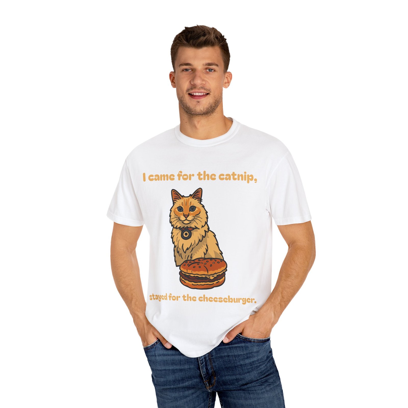 Cat-Themed Unisex T-Shirt - 'I Came for the Catnip, Stayed for the Cheeseburger' - Perfect for Cat Lovers, Funny Gift, Casual Wear, [...]