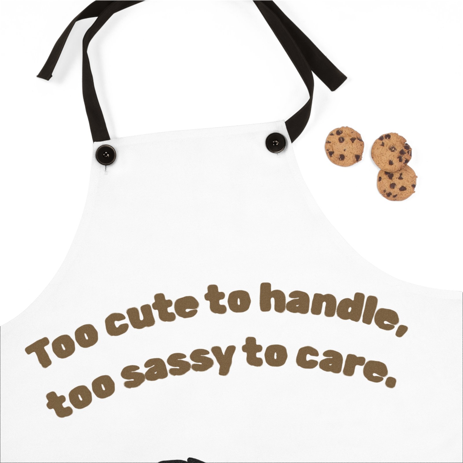 This charming apron adds a playful touch to your kitchen adventures. Featuring a quirky design that reads, “Too cute to handle, too sassy to care,” it brings a lighthearted vibe that’s perfect for anyone who enjoys cooking or baking. This apron is not just a practical kitchen essential, but also a fun conversation starter at gatherings and celebrations.