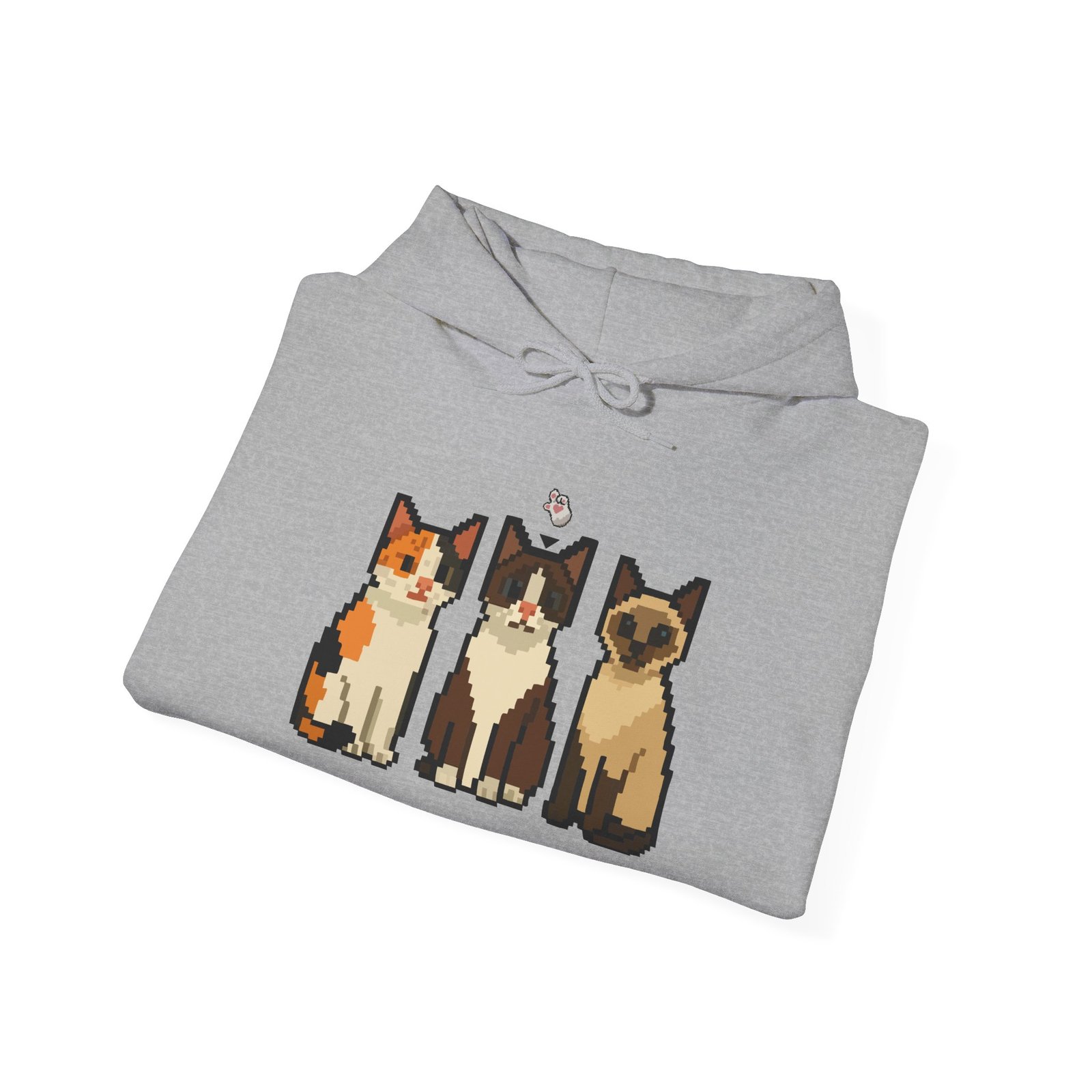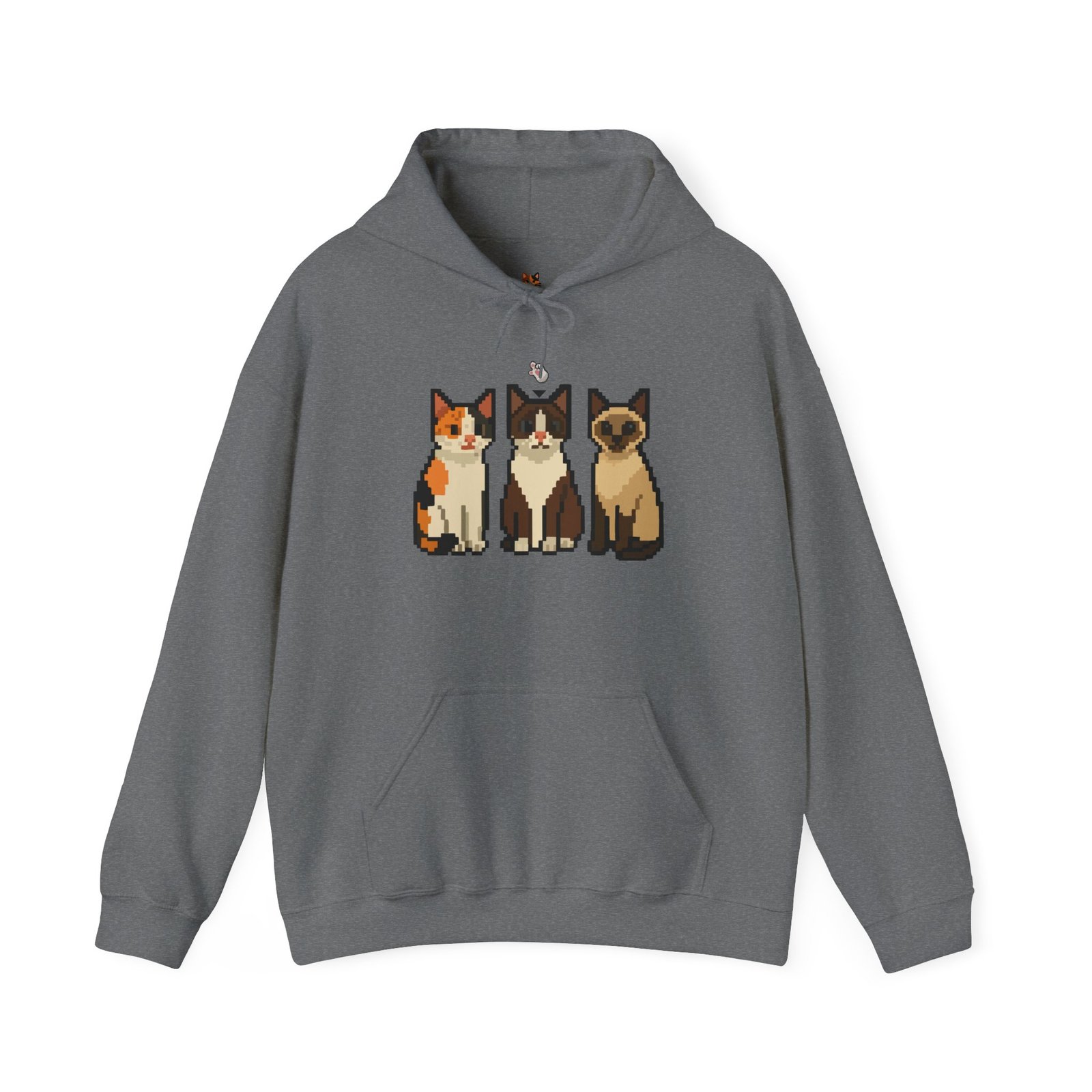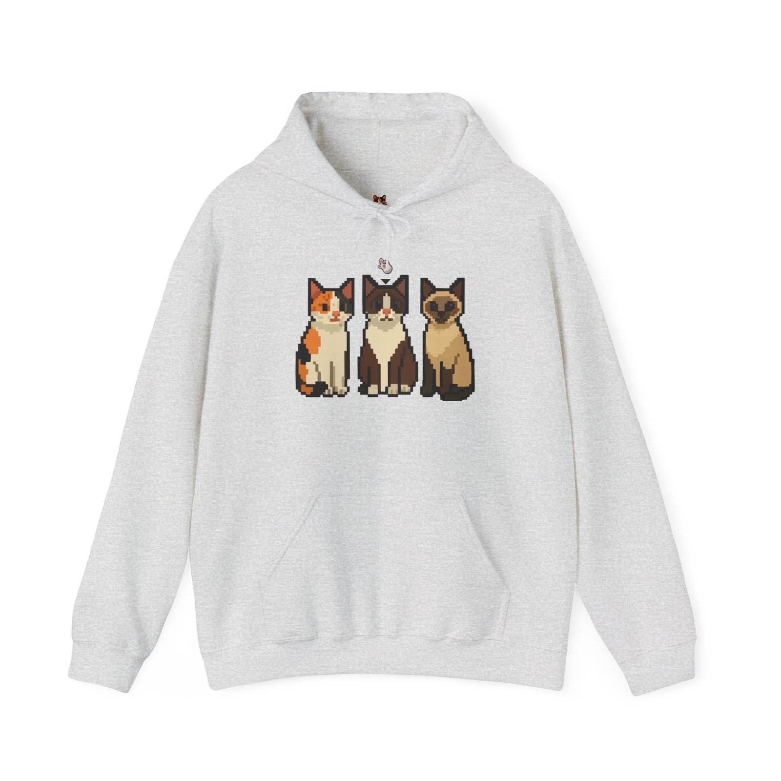 Embrace cozy comfort with this stylish unisex hoodie. Featuring a playful pixel art design of adorable cats, this hoodie radiates warmth and a touch of whimsy. Perfect for cat lovers, it elevates your casual outfits while keeping you snug during chilly days. Ideal for lounging at home, attending casual gatherings, or going out with friends, this versatile piece fits seamlessly into your wardrobe. Whether it’s a birthday, holiday gift, or a treat for yourself, this hoodie makes a charming statement. Great for Halloween, cat-themed parties, or just a cozy day in!